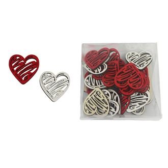 Sada dekoračních srdíček.Sada obsahuje 24 srdíček.Rozměry : 3,5 x 3,5 cm, tloušťka 0,3 cm.Barva : kombinace bílá, červená.Materiál na bázi dřeva. przeczytaj całość