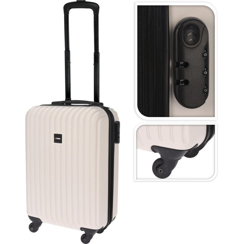 TROLLEY 18INCH 28LTR 330X200X520MM, 2.3KG, ABS SMALL DOTS COVER IN WHITE SAND PANTONE 13-0002 TSX CLR, 4 SPINNING WHEELS, W/COMBINATION LOCK ON THE SIDE, ALUMINIUM TUBE WITH PP HANDLE AND ABS HANDLE ON TOP, W/PRO WORLD LOGO WITH STICKER ON FRONT, ALL COMPONENTS IN BLACK COLOR, INSIDE FULLY LINING...