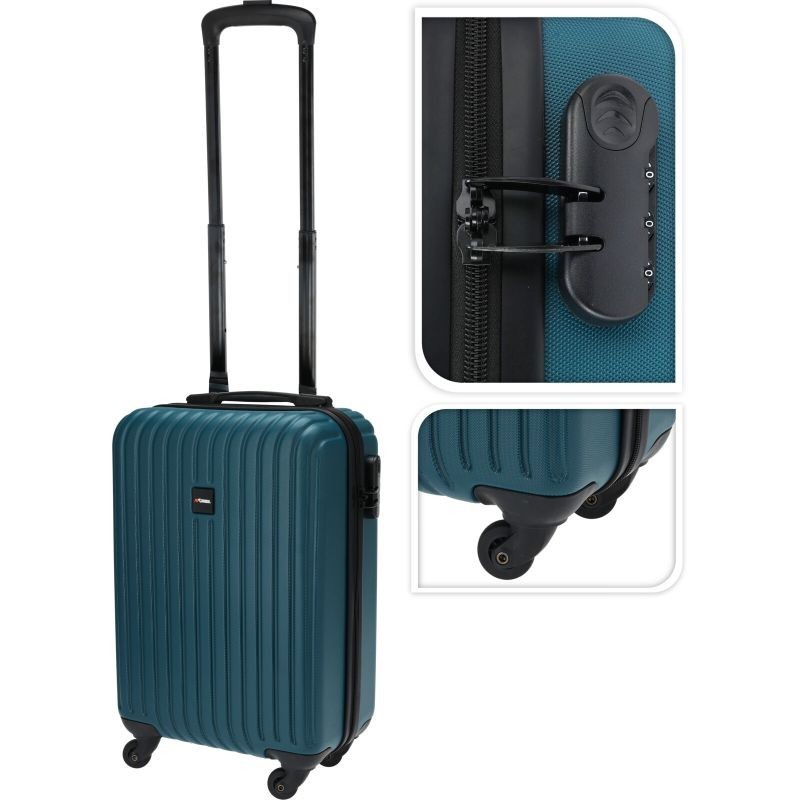 TROLLEY 18INCH 28LTR 330X200X520MM, 2.3KG, ABS SMALL DOTS COVER IN PETROL COLOR, 4 SPINNING WHEELS, COMBINATION LOCK ON THE SIDE, ALUMINIUM TUBE WITH PP HANDLE AND ABS HANDLE ON TOP, WITH PRO WORLD LOGO WITH STICKER ON FRONT, ALL COMPONENTS IN BLACK COLOR, INSIDE FULLY LINING IN BLACK CLR, WITH U...