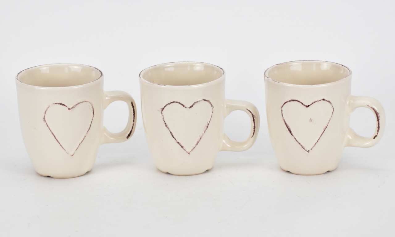 Hrnek Srdce bílý 150 ml II.jakost, sada 3 ks