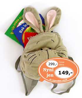 Batůžek, který vypadá jako plyšová hračka, tak může být tvůj věrný kamarád na tvých cestách. Vezmi si ho do školky, na procházku s maminkou nebo na výlet a když tě začnou bolet nožičky, můžete si sednout a přečíst si jednu z knížek. Každá obsahuje 9 říkadel.