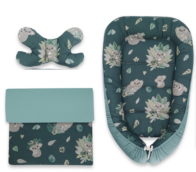 Baby Nellys Sada komplet, oboustranné hnízdečko 55 x 85 cm, Tropical Koala - zelená