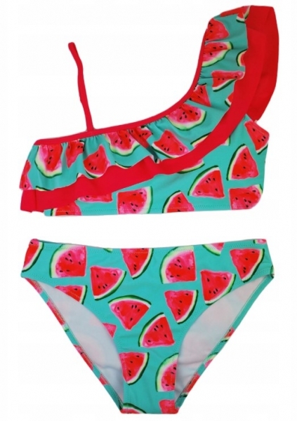 Dívčí dvoudílné plavky s volánkem - Noviti, Meloun, tyrkys/růžová, vel. 128/134; 128-134 (7-9r)
