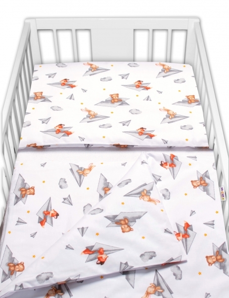 Baby Nellys 2-dílné bavlněné povlečení Medvídek a kamarádi - bílá, 135 x 100 cm