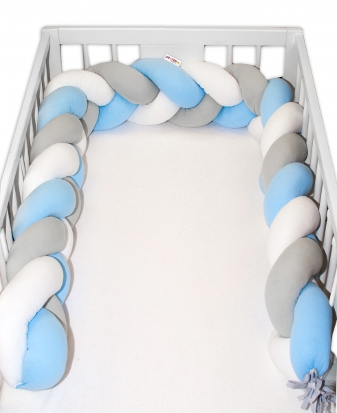 Mantinel do postýlky Baby Nellys ®.Pletený cop je moderní alternativou tradičního nebo polštářového mantinelu. Každý pramen je vyroben z nejkvalitnějšího strečového a měkkého bavlněného materiálu a antialergické výplně. Jsou ručně pletené.Jsou víceúčelové: - můžete je použít klasickým způsobem...
