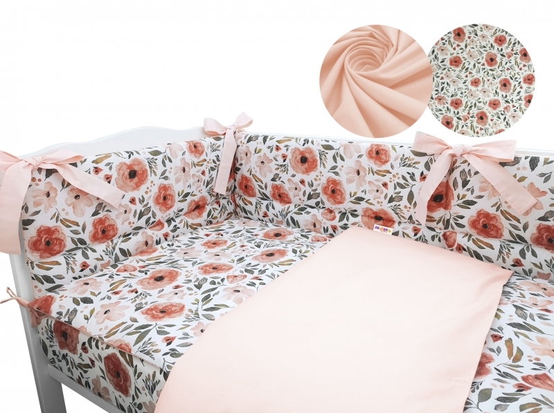 3-dílná sada mantinel s povlečením Baby Nellys - Begónie, meruňková; 120x90