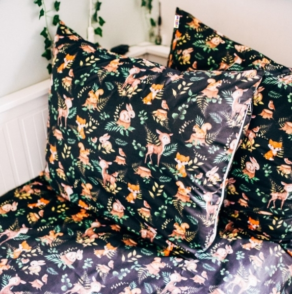 Baby Nellys 2-dílné bavlněné povlečení - Baby Friends, černá/zelená, 140x200/70x90cm; 140x200/70x90cm