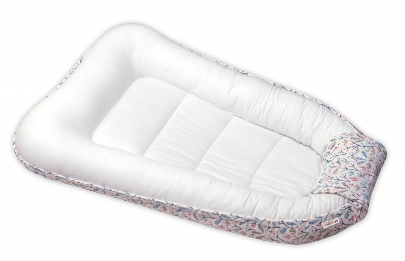 Baby Nellys Oboustranné hnízdečko, kokon bavlna LUX, Kalina - bílá