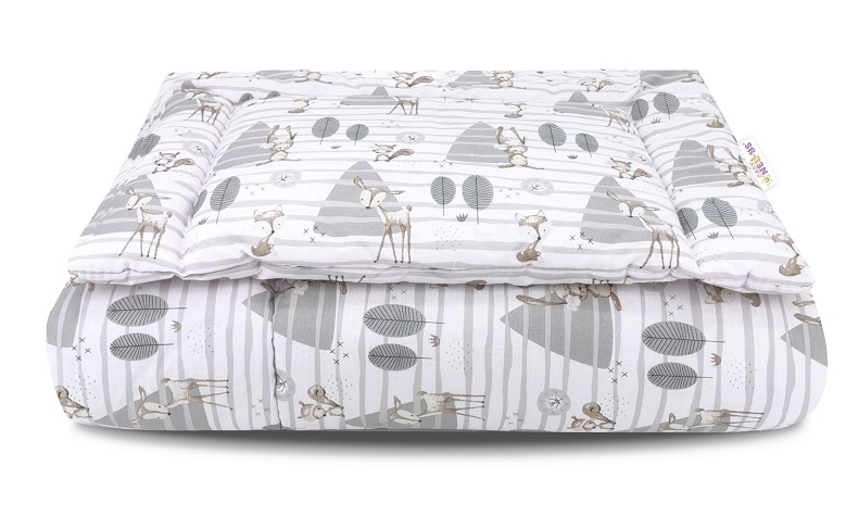 Baby Nellys 2-dílná sada do postýlky s výplní, Zvířátka v lese - šedá; 120x90