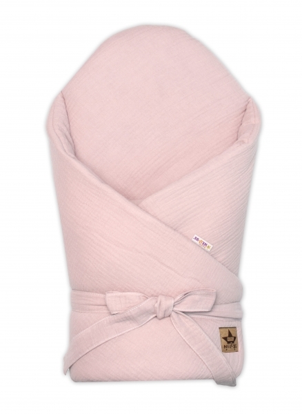 Mušelínová zavinovačka s výztuží na zavazování, Baby Nellys, 75x75cm, pudrově růžová