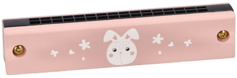 Harmonijka dmuchana dla początkującego muzyka, ozdobiona uroczym zajączkiem.