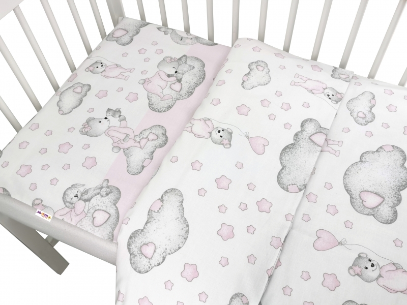 Baby Nellys 2-dílné bavlněné povlečení, Teddy on the sky - růžové, 135 x 100; 135x100