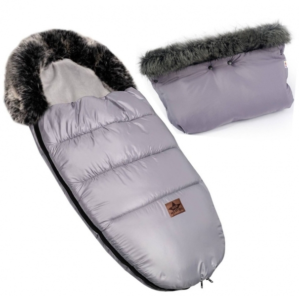Zimní fusak s kožešinou + rukávník zdarma, Baby Nellys, 50 x 100cm, šedý