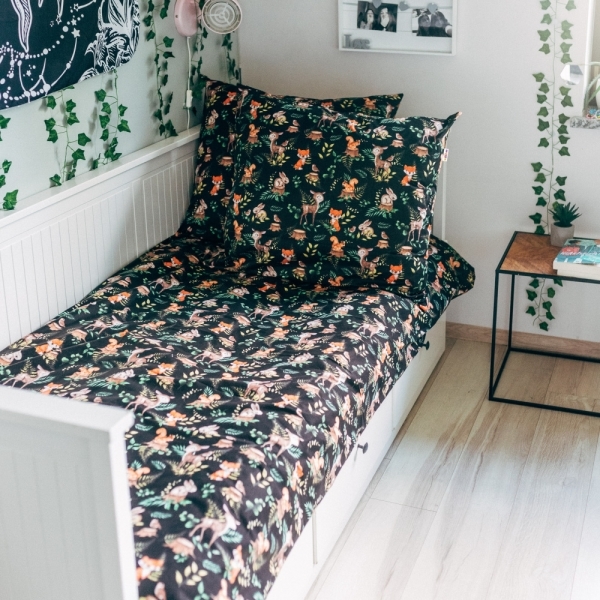 Baby Nellys 2-dílné bavlněné povlečení - Baby Friends, černá/zelená; 140x200/70x80cm