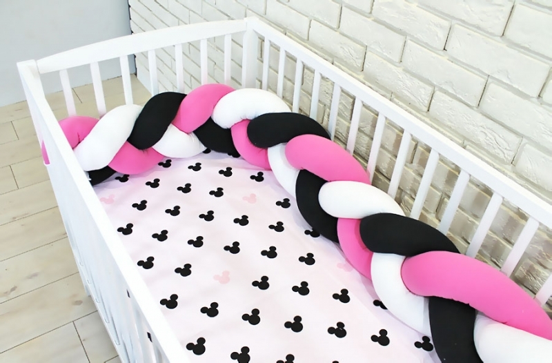 Baby Nellys Mantinel pletený cop s povlečením Mickey - černá, bílá, růžová; 120x90