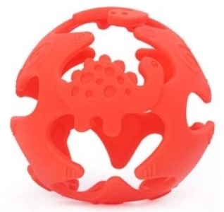 GiliGums Silikonové kousátko Míček, Dino - červené