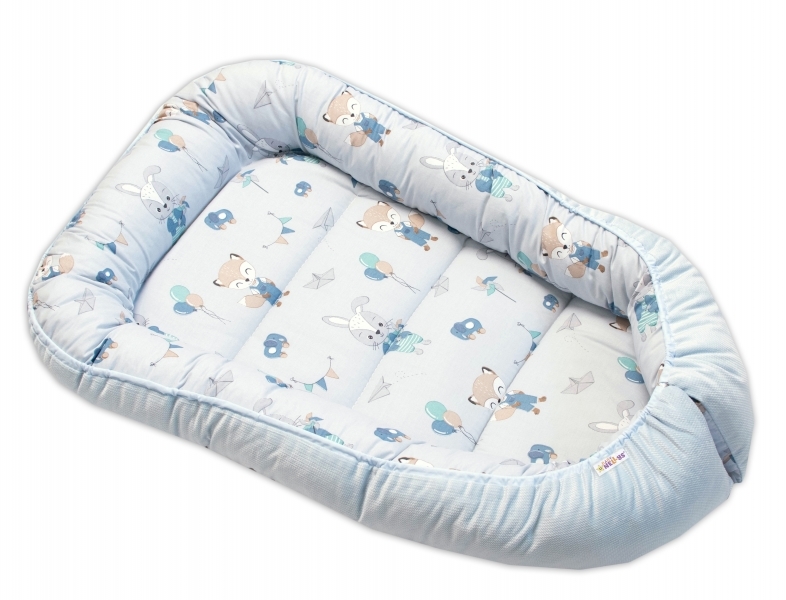 Baby Nellys Oboustranné hnízdečko Velvet, 55x75cm, Liška a zajíc, modré