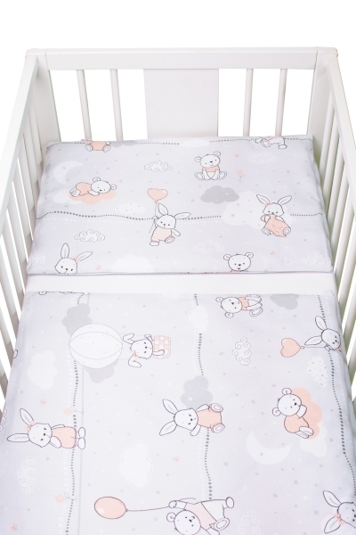 Povlečení do postýlky bavlna Premium Baby Nellys,Good night Animals, šedé,135x100 cm, GIRL
