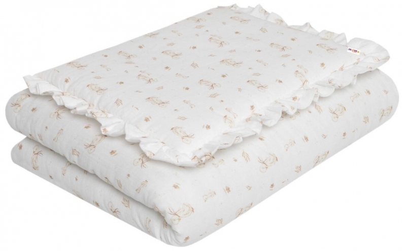 Baby Nellys ® = česká značka - záruka kvality a spokojenosti.Sada povlečení vyrobená z nejkvalitnějšího bavlněného mušelínu double look. Skládá se z polštáře 40x50cm zdobeného ozdobným volánkem a přikrývky 120x90cm.Polštář má trvale všitou výplň. Je plochý +/- 3 cm, takže je ideální pro miminka...