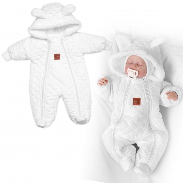Oteplená prošívaná kombinéza Luna s kapucí Baby Nellys, bílá, vel. 74; 74 (6-9m)