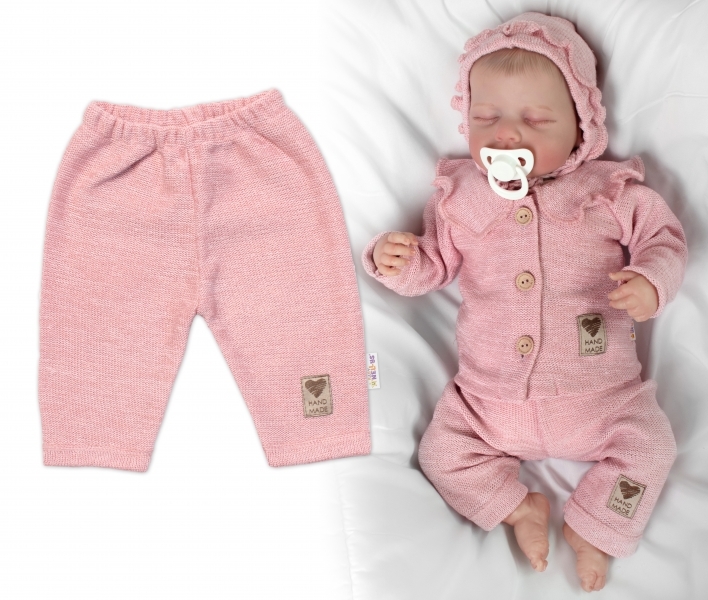 Pletené kalhoty Hand Made Girl, Baby Nellys, růžové, vel. 74; 74 (6-9m)