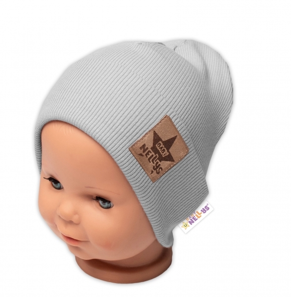 Žebrovaná dvouvrstvá čepice s lemem - šedá, vel. 104/110, Baby Nellys; 104/110 (3-5r)