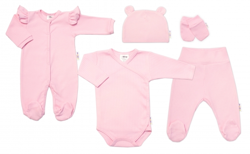 Praktická 5-dílná žebrovaná soupravička do porodnice Baby Nellys GIRL, růžová, vel. 62; 62 (2-3m)
