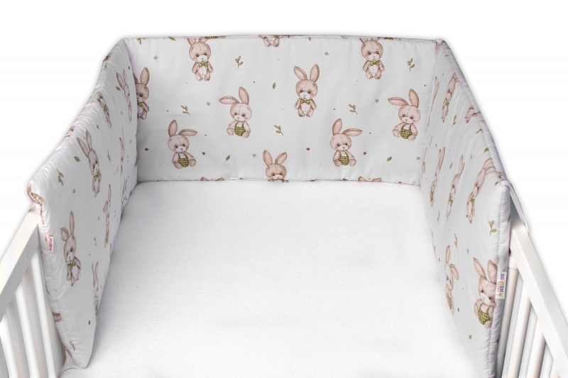Mantinel do postýlky 30x180 cm, Baby Nellys, bavlna, Zajíčci, bílý