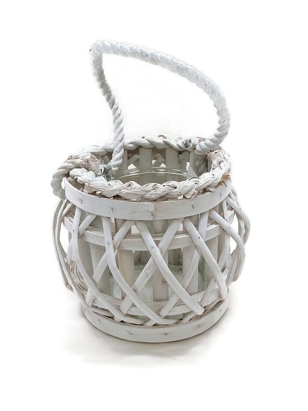 Lucerna skleněná s proutím 13cm LAMPION bílá