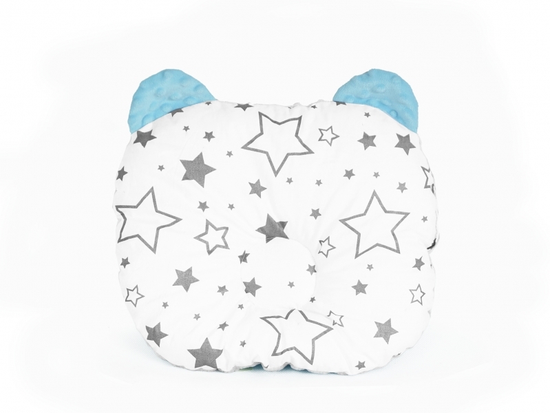 Baby Nellys Oboustranný polštářek s oušky, 30x35cm - Hvězdičky ,minky modrá/mátová