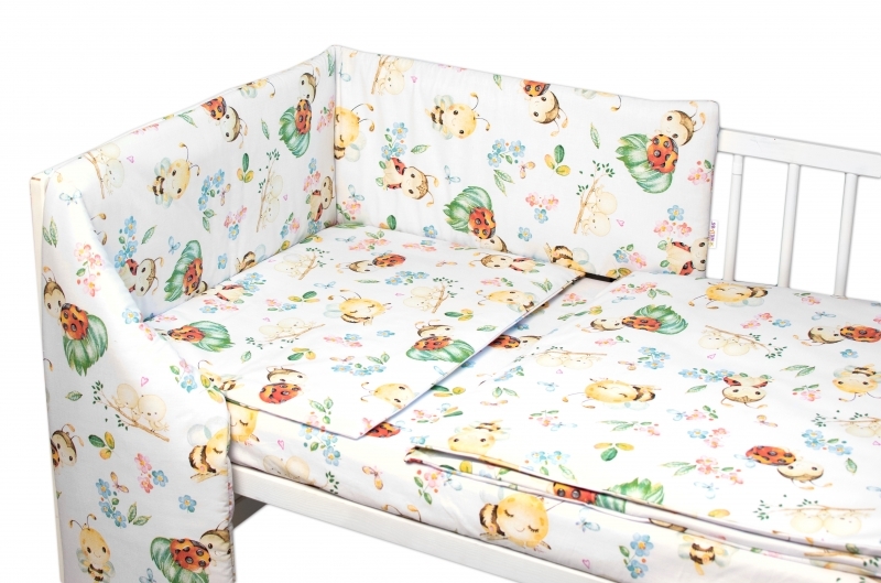 Mantinel s povlečením Premium, 3D sada, Včelky a Berušky - bílá, 135x100 cm; 135x100