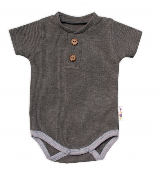Baby Nellys Kojenecké žebrované body s knoflíčky kr. rukáv, Boy - šedé; 62 (2-3m)