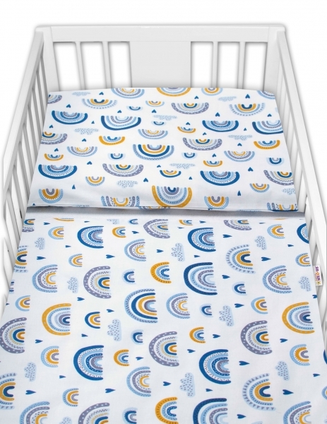 Bavlněné povlečení do postýlky, 2D, Duha, modrá, 120x90 cm; 120x90