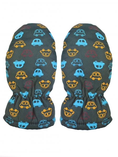Dětské zimní, nepromokavé palčáky, Auta, tmavě šedé, vel. 104/110, 14 cm; 104/110 (3-5r)