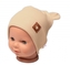 Baby Nellys Žebrovaná dvouvrstvá čepice s oušky TEDDY - béžová, vel. 80/86; 80/86 (12-18m)