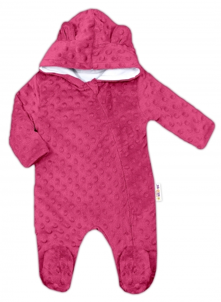 Baby Nellys Kombinézka/overálek MINKY s kapucí a oušky - sytě růžová, vel. 62; 62 (2-3m)