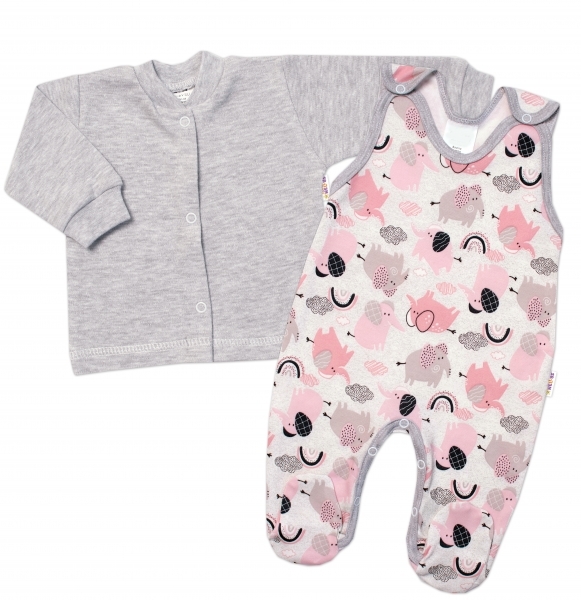 Baby Nellys 2-dílná sada, bavlněné dupačky s košilkou Sloníci, šedá, vel. 68; 68 (3-6m)