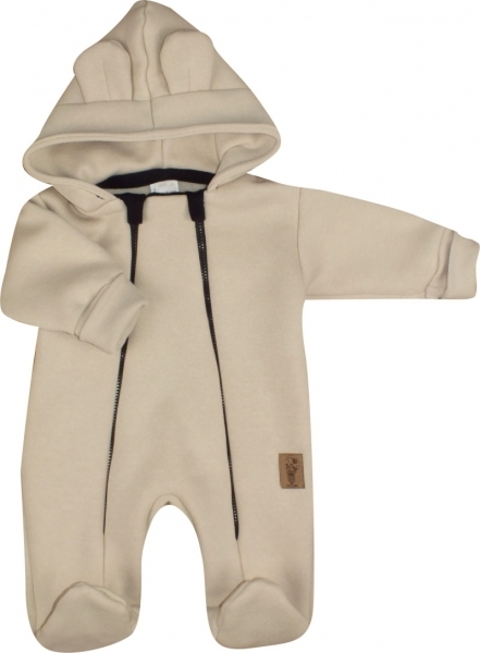 Oteplený dětský overálek se šlapkama a kapucí, Kazum, béžový, vel. 86; 86 (12-18m)