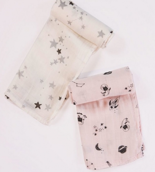Minene Sada látkových plenek bambus/mušelín - bílá, růžová