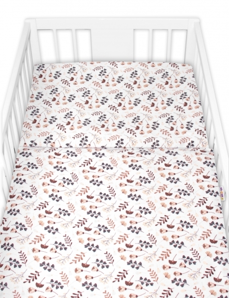 Povlečení do postýlky, 2D sada flanel - Louka, Baby Nellys, béžová/bílá; 120x90