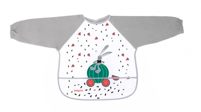 BabyOno Zástěrka, bryndák nepromakavý s dlouhým rukávem a kapsíčkou - šedý - 24m+