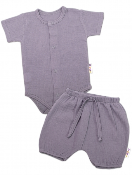 Baby Nellys 2-dílná mušelínová soupravička, body kr.rukáv + kraťasky BOY, šedá; 56 (1-2m)