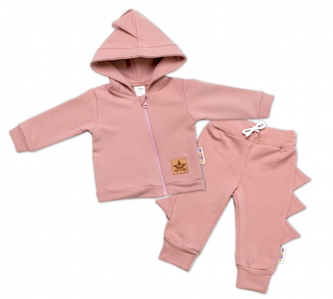 BABY NELLYS Dětská tepláková souprava s kapucí Krokodýl - pudrově, starorůžová, vel. 68