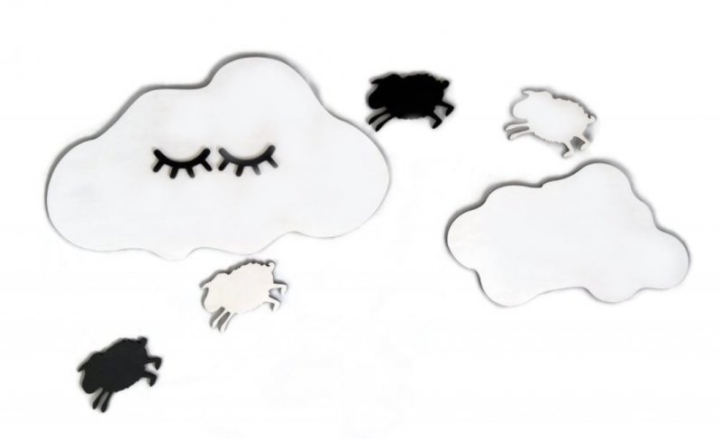 Dekorace na zeď - Spící mráček s ovečkama, bílý/černý, Adam Toys