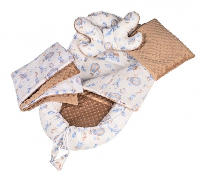 Baby Nellys Sada komplet oboustr. hnízdečko Balón a letadla, 6v1, bílá/capuccino