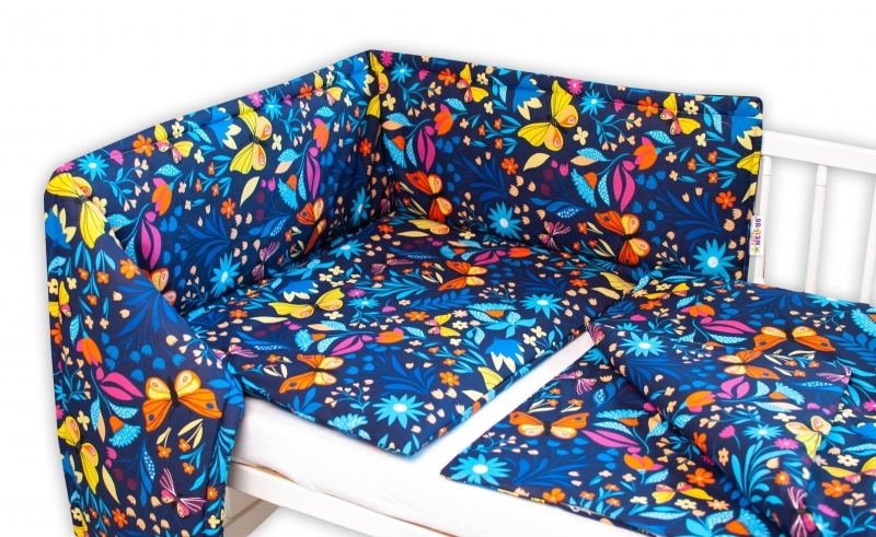 Baby Nellys 3-dílná sada Mantinel s povlečením - Motýlí louka, granát; 120x90