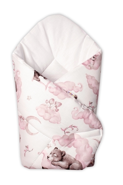 Novorozenecká bavlněná zavinovačka Baby Nellys, Zvířátka na mráčku, růžová/bílá