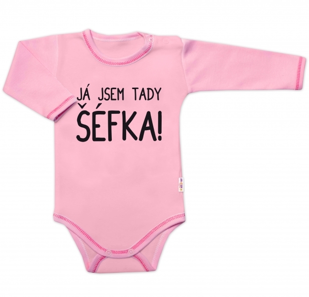 Body dlouhý rukáv s vtipným textem Baby Nellys, Já jsem tady ŠÉFKA! ; 56 (1-2m)