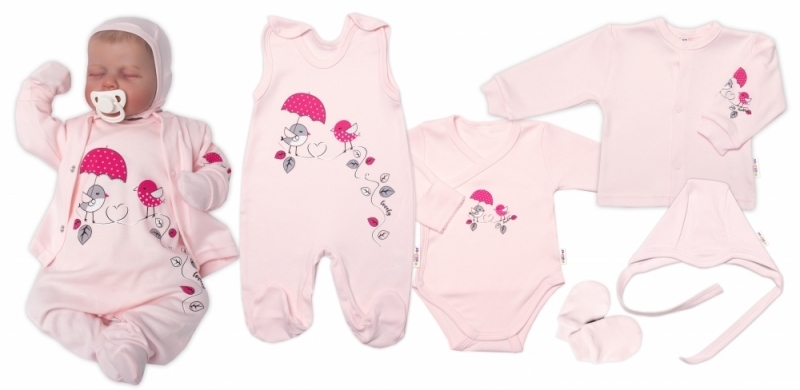 Soupravička do porodnice 5-ti dílná, Ptáčci Baby Nellys, růžová, vel. 62; 62 (2-3m)