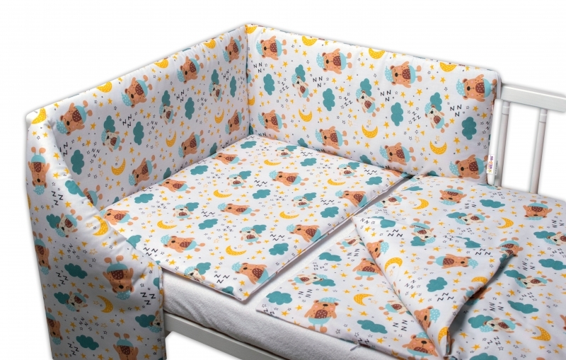3-dílná sada, mantinel s povlečením Sny medvídků - hnědá, bílá, 120x90cm; 120x90